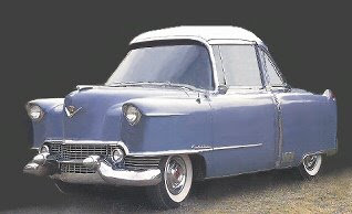 If it looks like chrome, its plastic. In fact, the entire body is blow-molded plastic recycled from pop bottles. Its so light, you won't need a jack to change tires. It runs on apple juice and only fresh air is emitted from the tiny exhaust pipe. You have a choice between carrying a bag of groceries or a passenger. In early road tests, the new Government Motors Caddy was a bit hard to handle in crosswinds. Crash test results aren't in yet.